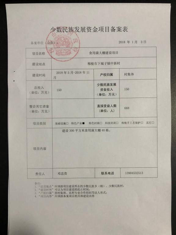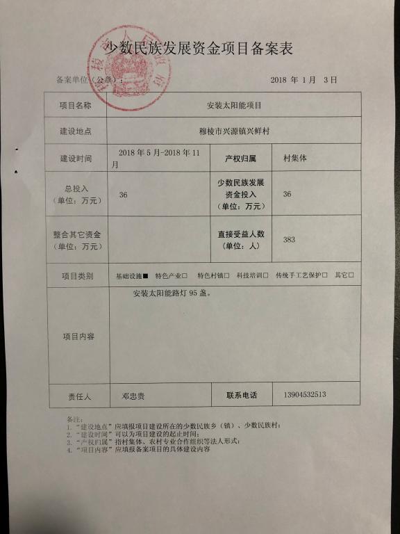 附件:《2018年少数民族发展资金项目备案表》