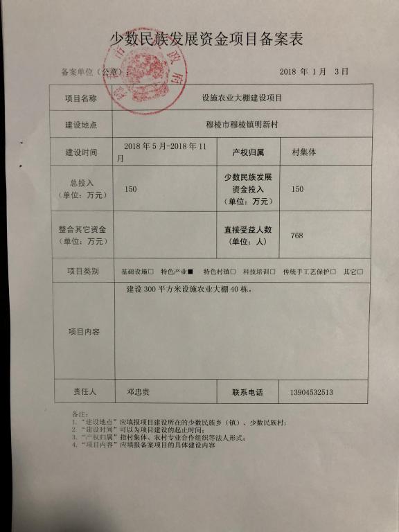 关于《穆棱市人民政府关于穆棱市2018年少数民族发展资金项目实施方案的批复》的公示