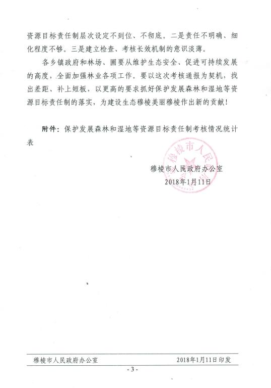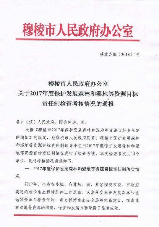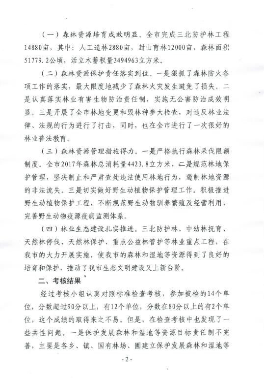 关于2017年度保护发展森林和湿地等资源目标责任制检查考核情况通报