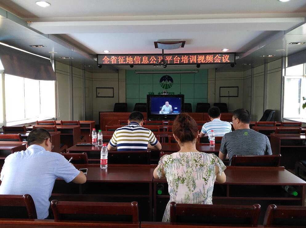 7月12日,省国土资源厅召开的全省征地信息公开平台培训视频会议,会议由耕保处处长刘刚主持,副厅长杨志伟发表重要讲话,省信息中心技术人员栾娇杰对征地信息平台的相关操作流程进行了详细的讲解。国土局主管副局长及耕保股、不动产登记中心、整理中心、信息中心等人员参加会议。
