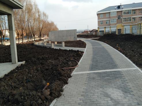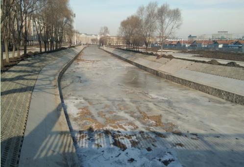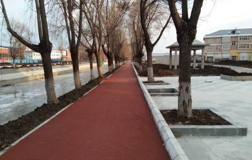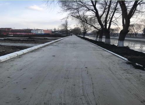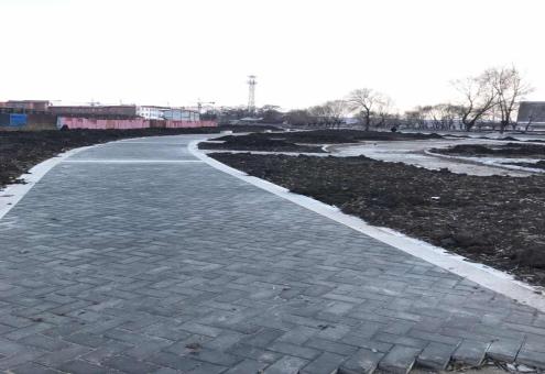目前,团结桥至四中桥:两侧生态护坡铺装、东岸路面混凝土基层、甬路铺装、公厕、西侧彩色沥青混凝土、桥墩施工完毕,树坑已挖完等待栽树;四中桥至铁路桥:东岸甬路铺装、沿河路面混凝土基层施工完毕,树坑已挖完等待栽树;西岸混凝土路面完成百分之八十五,甬路铺装完成百分之三十五,开挖部分树坑;团结桥至实验小学:东岸生态护坡铺装、球场混凝土基层、沿河路面混凝土基层完毕,球场位置围网基础梁粘砖完成百分之三十,甬路完成百分之九十五。