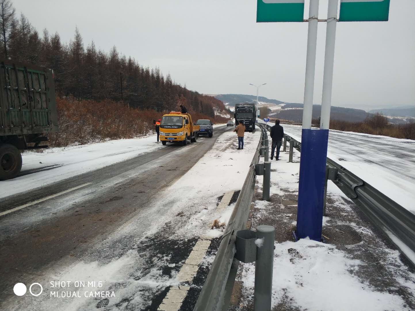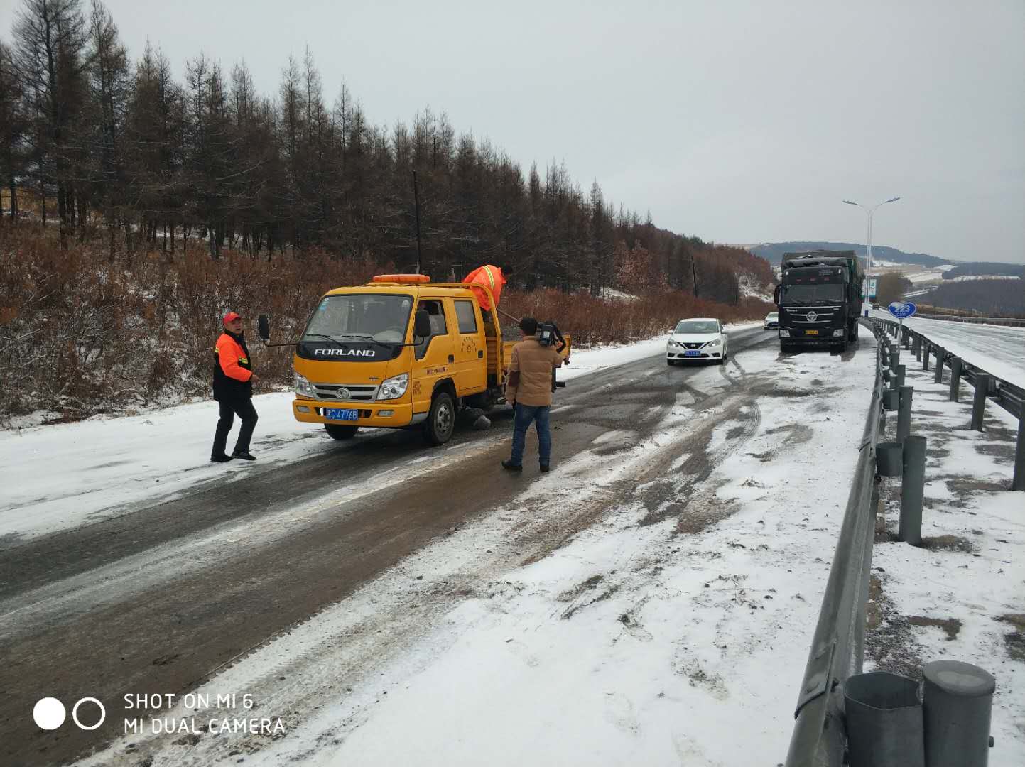 为确保公路交通安全,市公路管理站于凌晨5点便派出清雪车辆上路清雪保通,并根据路况相继派出3辆运输车,15名养路工人,在G331国道重点路段撒防滑料抢险保通。