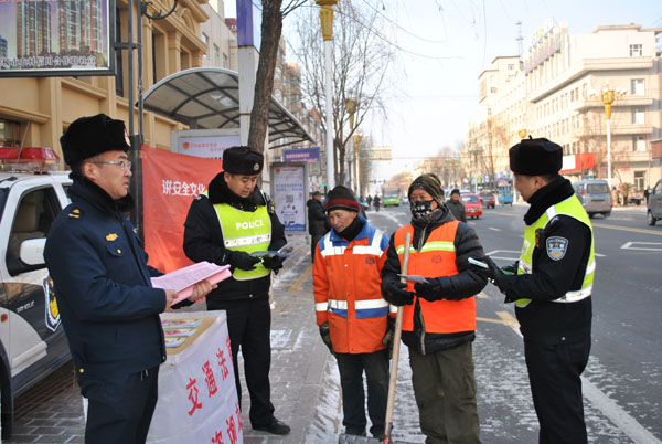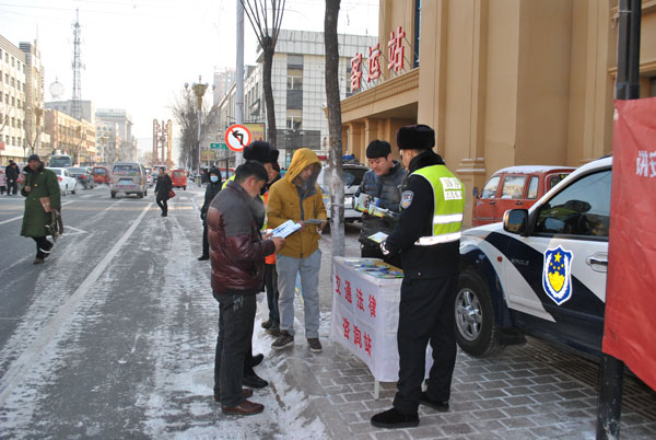 活动中,交警大队组织民警在八面通镇长征路客运站西侧设置了交通安全宣传服务咨询台,以“讲安全文化、与平安同行”为主题,通过摆放交通安全知识图板,发放交通安全宣传材料、宣讲交通安全常识等方式,积极向广大市民及驾驶人宣传道路交通安全法律法规,并详细、耐心地解答了现场群众了提出的交通安全法律问题。同时,民警们还针对冬季恶劣天气多发的实际,向市民讲解了冬季安全出行的注意事项,教育引导广大市民遵守交通法规,文明出行,共同为营造安全、有序、和谐的交通安全环境而努力。